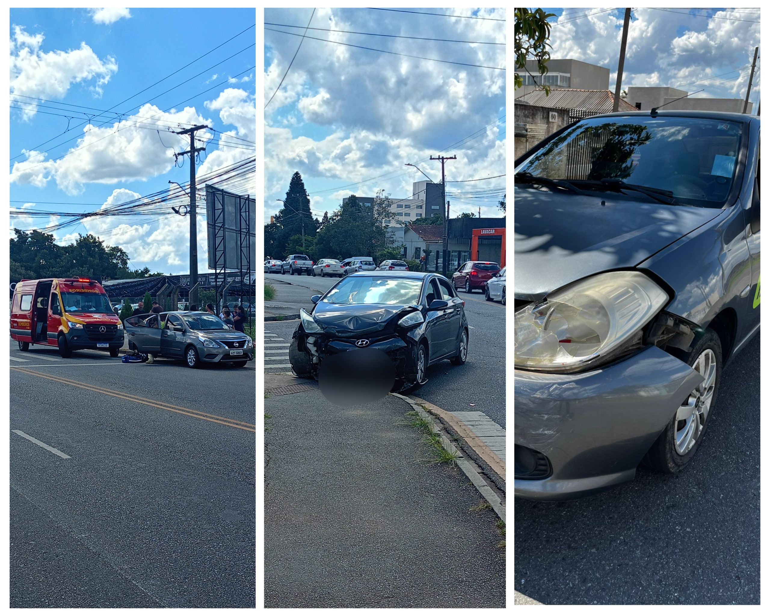 De acordo com informações apuradas no local, um Hyundai HB20 teria avançado a via preferencial e colidido contra um Nissan Versa. Com o impacto, o Versa rodou na pista e acabou atingindo um Renault Symbol, que estava parado na Rua Castanheira aguardando para acessar a Avenida das Araucárias.