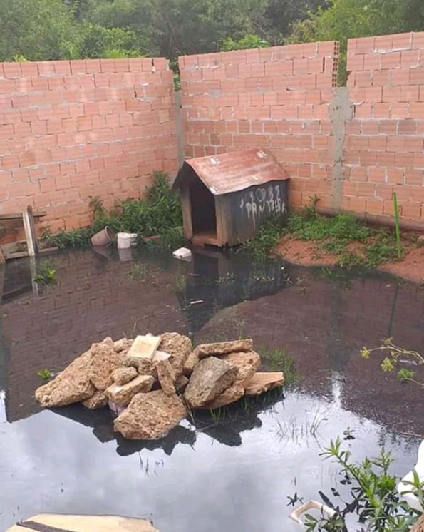 Segundo informações, parte da tubulação de esgoto se rompeu e como o terreno é em área baixa, a água escorreu toda para o local e ficou empoçada no terreno.