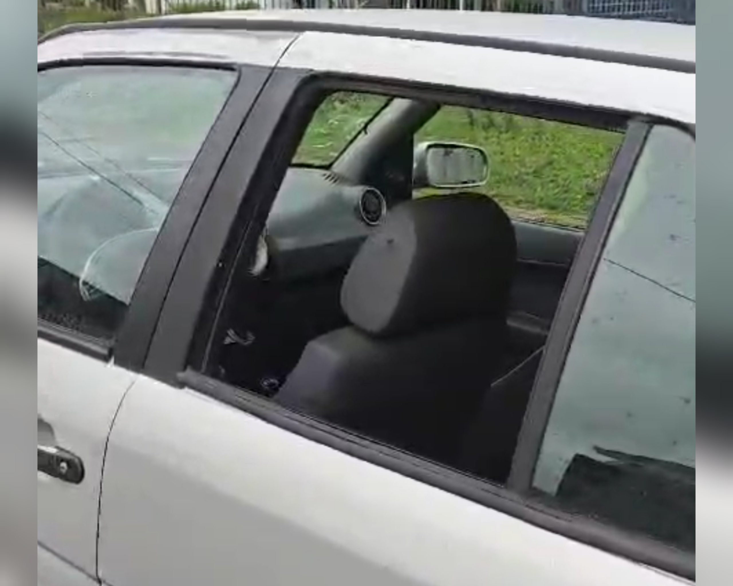 Disparo acertou o encosto do banco do motorista. Imagem: TV Fazenda / Colaboração