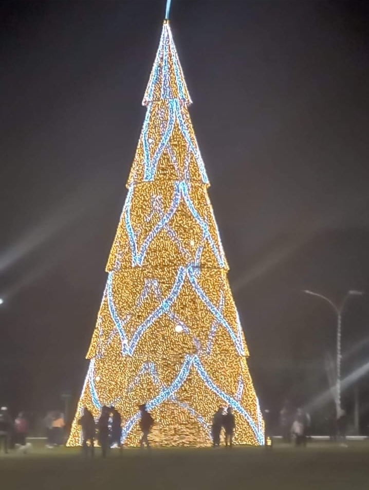 O ornamento, é feito de aço e coberto por cerca de 27 mil luzes de led na cor azul. Ainda, segundo o contrato, a árvore mede 18,5 metros de altura por 8 metros de largura.
