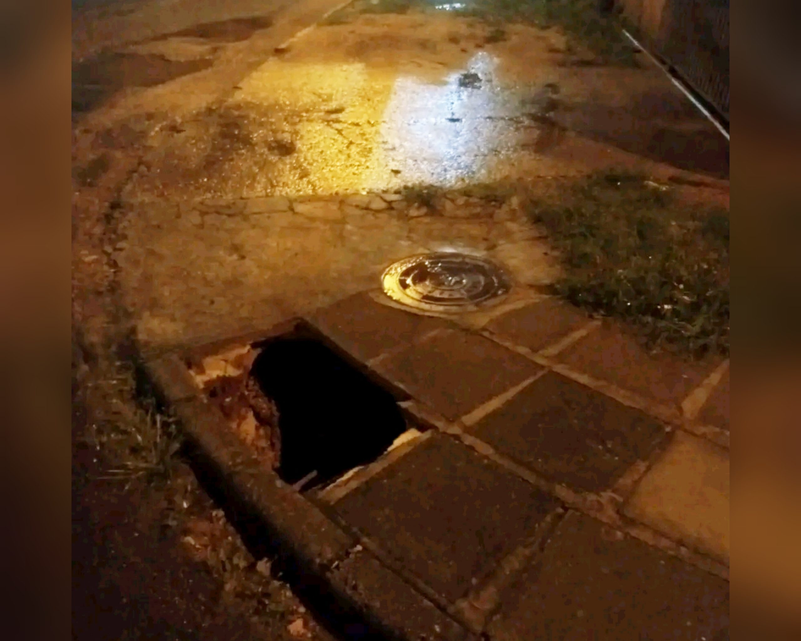 O relato foi feito por ele mesmo em uma rede social. De acordo com informações do morador, ele estava voltando do trabalho, a caminho de casa, quando parte da calçada na rua Limoeiro no bairro Eucaliptos cedeu e por pouco ele não caiu na cratera formada.