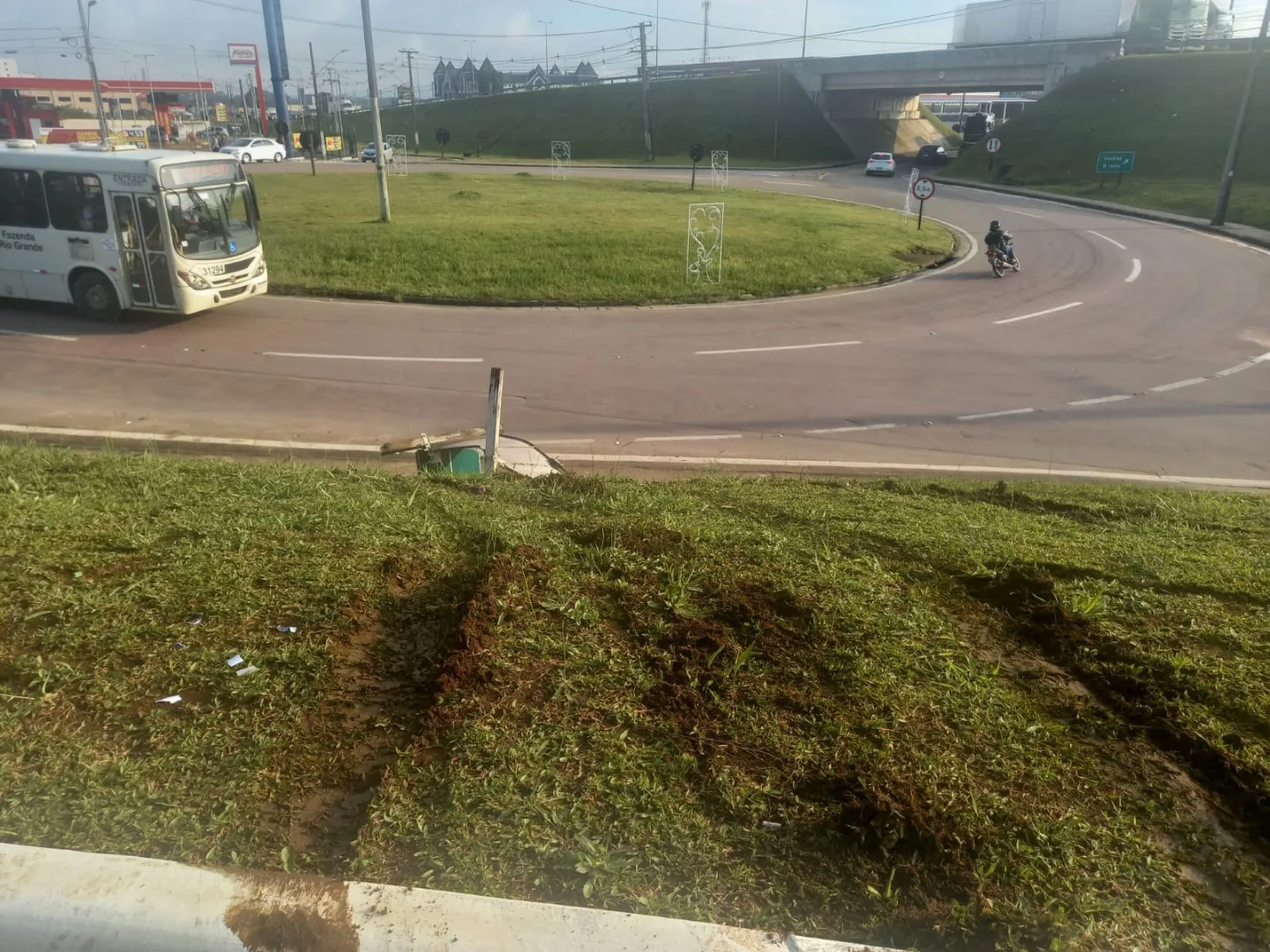 Marcas das rodas do veículo durante a queda. Foto: Colaboração