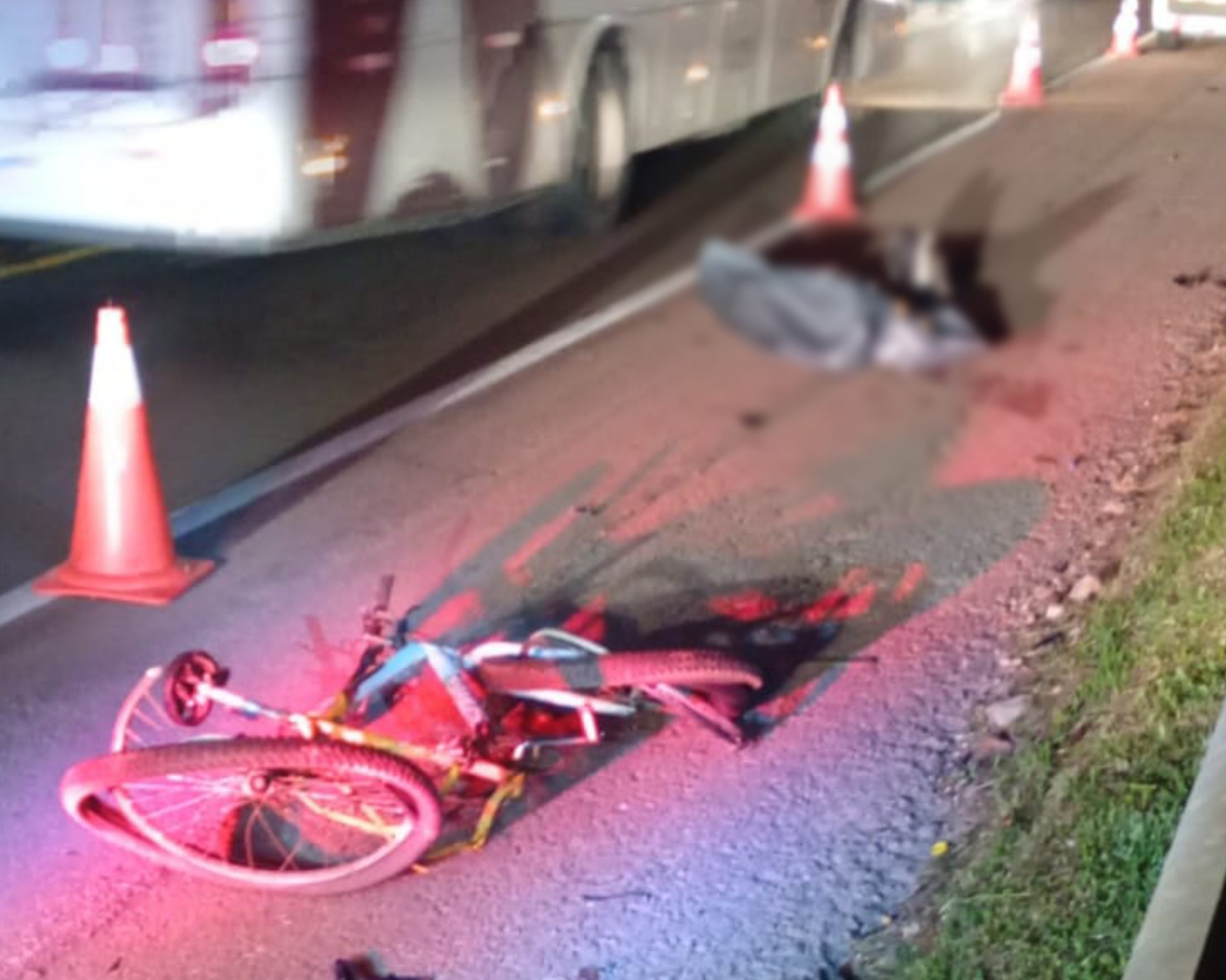Um ciclista de 20 anos, identificado como William, morreu após ser atropelado na noite desta sexta-feira (24), no km 152 da rodovia em Mandirituba.