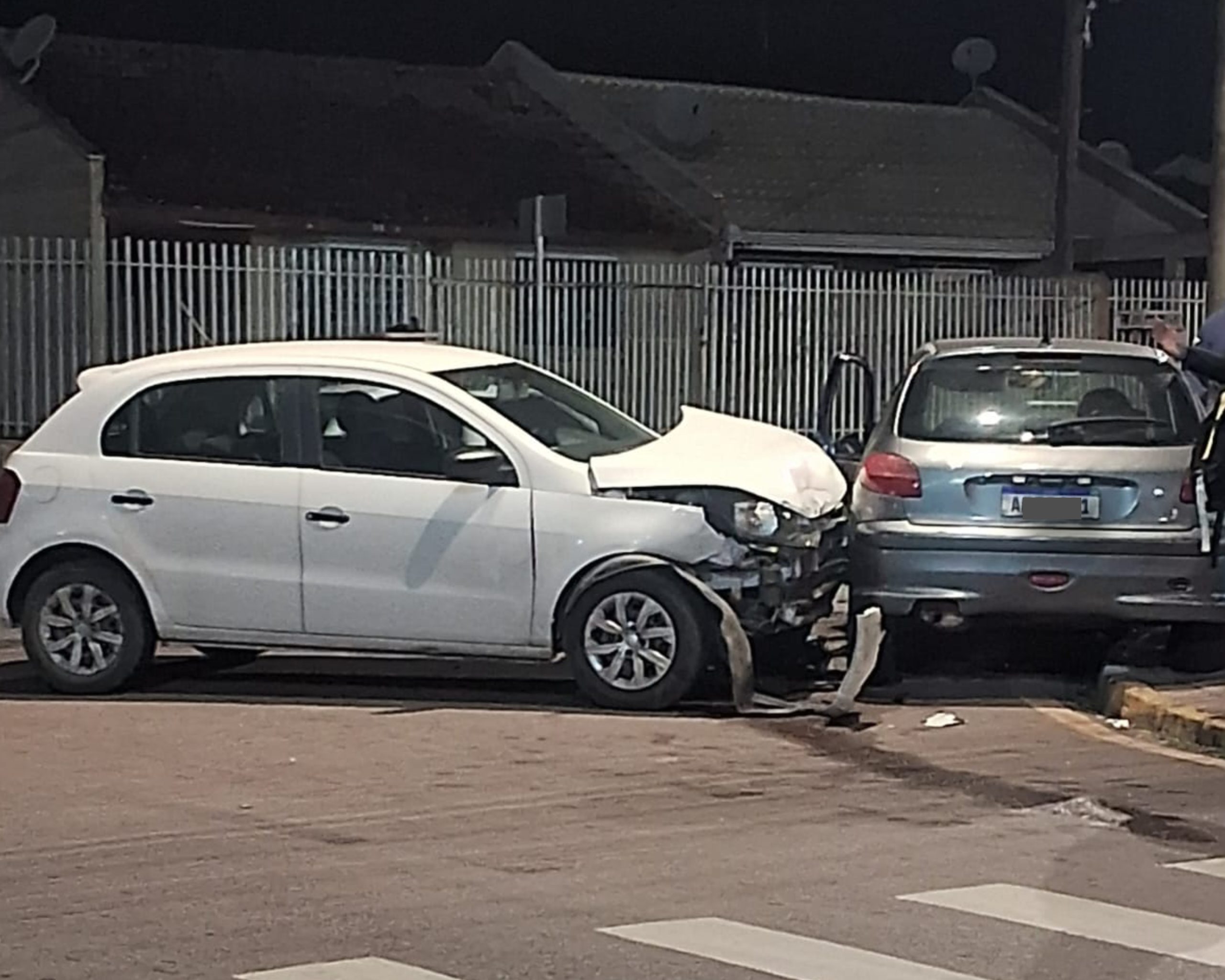 Uma colisão entre dois veículos foi registrada na noite desta quinta-feira (04) no cruzamento das ruas Pernambuco e Rio Amazonas, no Bairro Estados, em Fazenda Rio Grande.