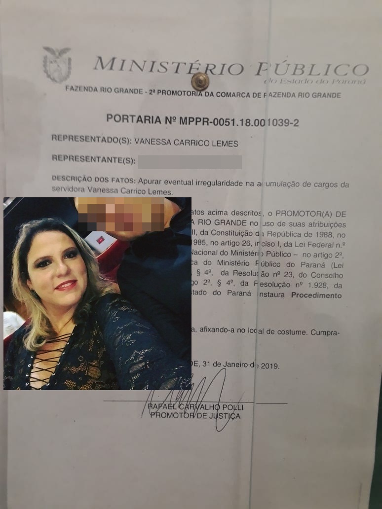 Consta no teor da denúncia, que a servidora supostamente acumulava cargos nas prefeituras de São José dos Pinhais e Fazenda Rio Grande e horários supostamente sobrepostos.