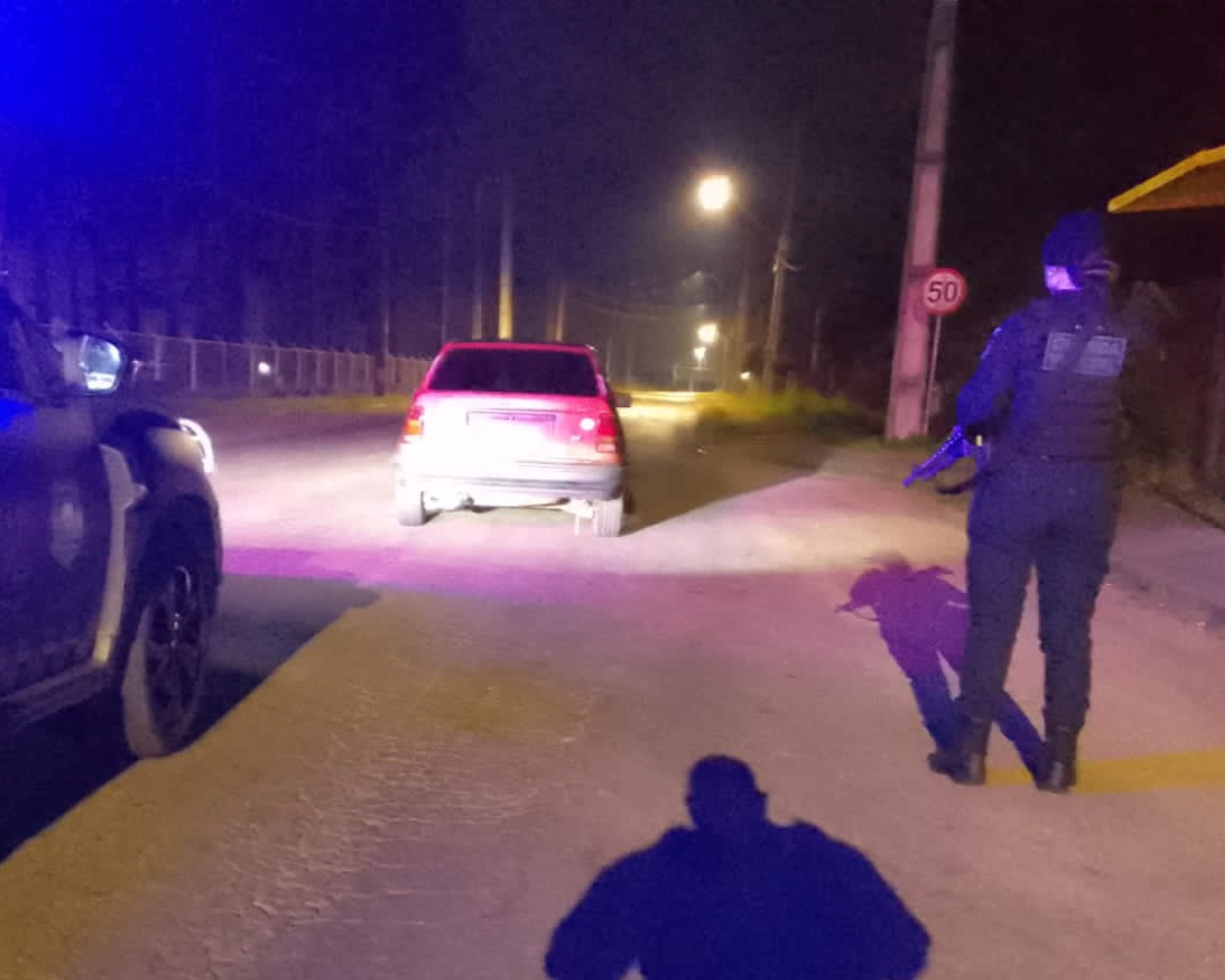 De acordo com o relatório da corporação, ao acessar a Rua Francisco Ferreira da Cruz, os agentes avistaram um veículo Kadett trafegando em zigue-zague. Diante da situação de risco, a equipe acionou os sinais luminosos e realizou a abordagem.