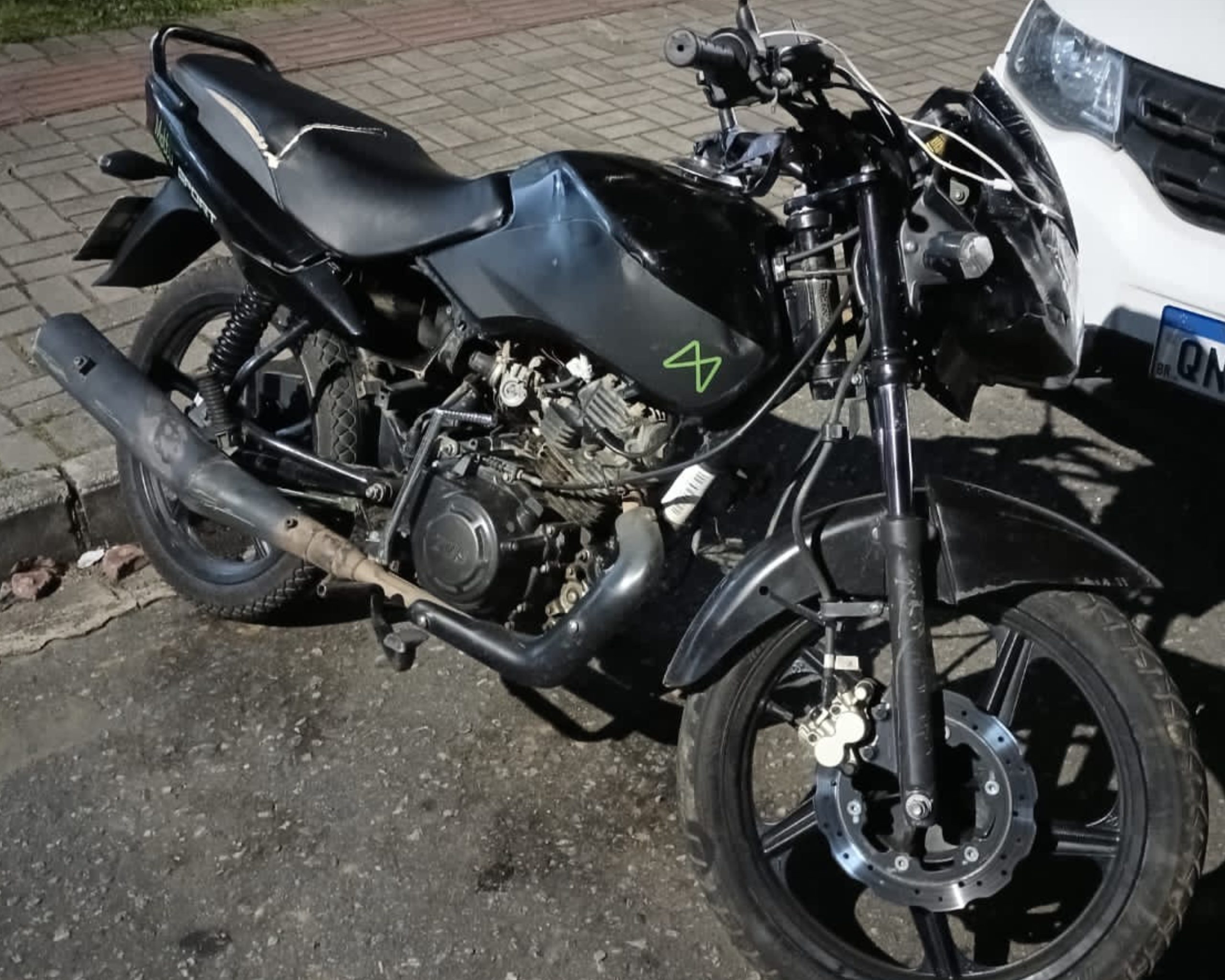 A Guarda Municipal recuperou uma motocicleta com alerta de furto na noite desta quinta-feira (27), por volta das 19h30, enquanto uma equipe se deslocava para prestar apoio a uma ocorrência de possível agressão e violência doméstica no bairro Santa Terezinha.