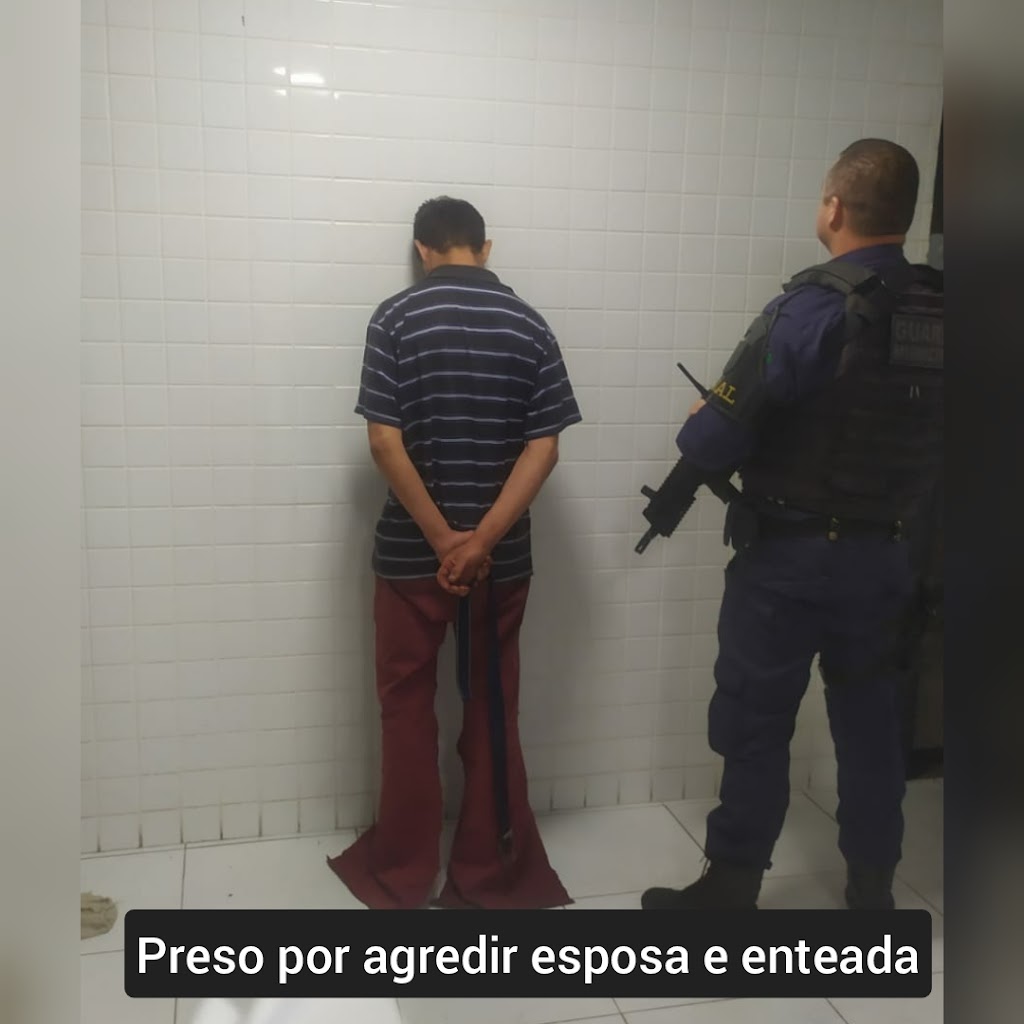 Um homem de 39 anos, foi preso pela Guarda Municipal na noite de segunda-feira (24), após agredir a esposa e a enteada no bairro Passo Amarelo, região rural do município.