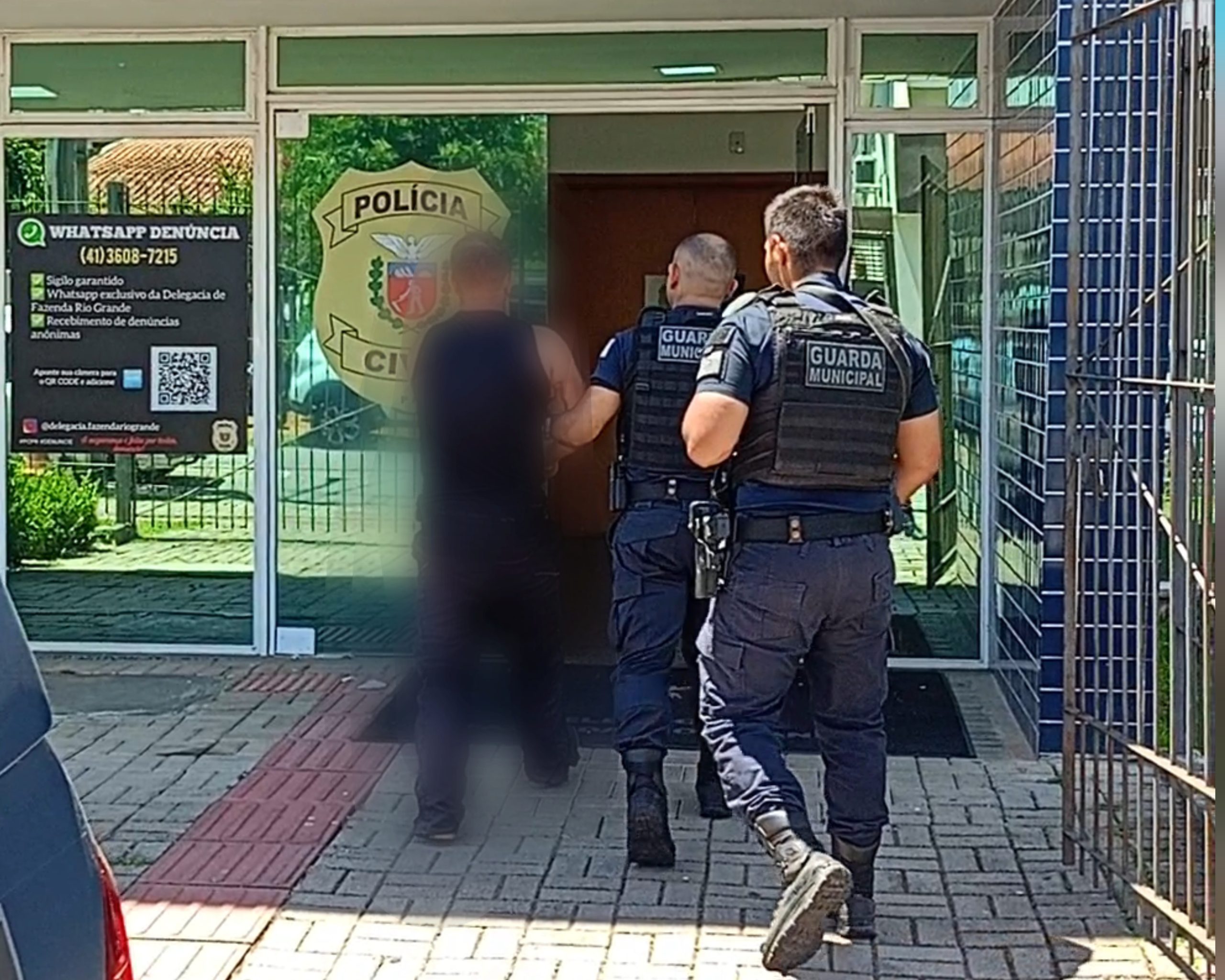Diante da situação, o homem recebeu voz de prisão em flagrante e foi encaminhado à Delegacia da Polícia Civil de Fazenda Rio Grande.