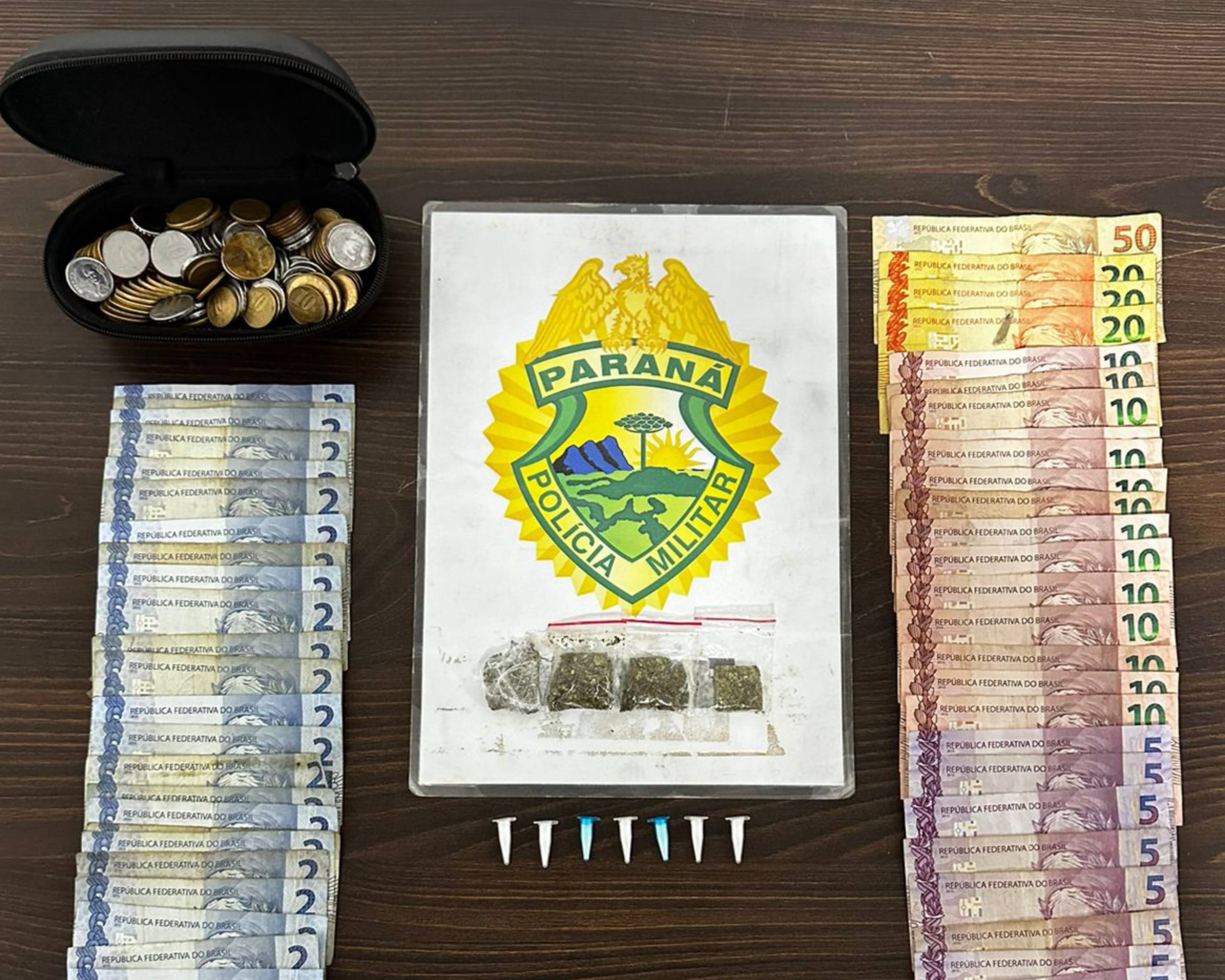 Dentro de uma pochete que era carregada pelo suspeito, os policiais encontraram mais drogas e R$ 397 em espécie, dinheiro que pode ter sido da venda de entorpecentes.