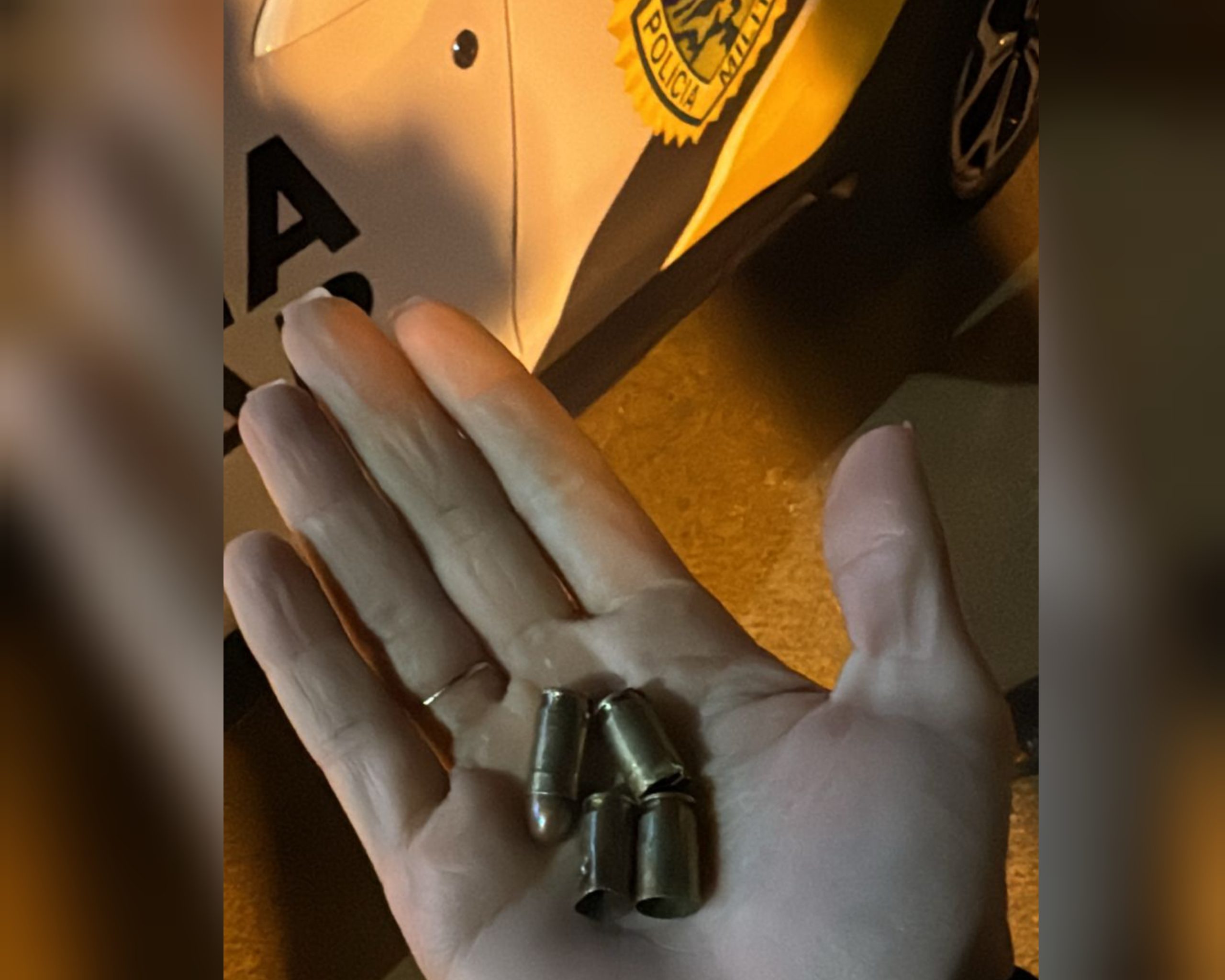 Três munições deflagradas e uma intacta, de pistola calibre 380, foram apreendidas pela PM e encaminhadas à delegacia do município onde o caso foi registrado.