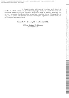 Cabe lembrar que o Prefeito foi denunciado na Câmara pelo mesmo motivo, sendo aceito a denúncia pela Comissão de Constituição e Justiça – CCJ, no qual, irá a votação no plenário no próximo dia 05 [de Agosto], para deliberar se os Vereadores abrem ou não o processo de cassação do Prefeito.