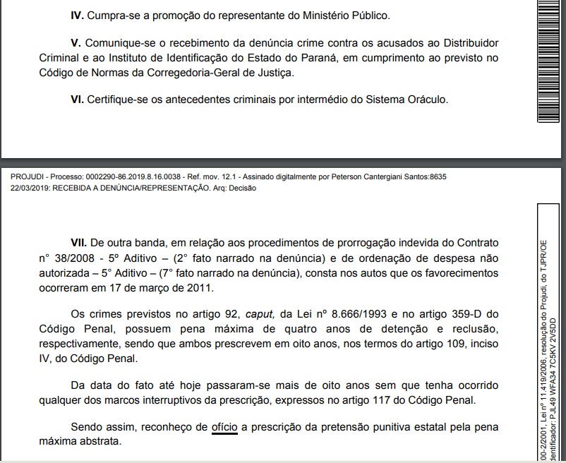 Uma denúncia apresentada pela 2º Promotoria de Justiça do Ministério Público do Estado do Paraná em Fazenda Rio Grande, no dia 15 deste mês (março), foi aceita pelo Excelentissímo Juiz Peterson Cantergiani Santos, da Vara Criminal de Fazenda Rio Grande na última sexta-feira, 22.