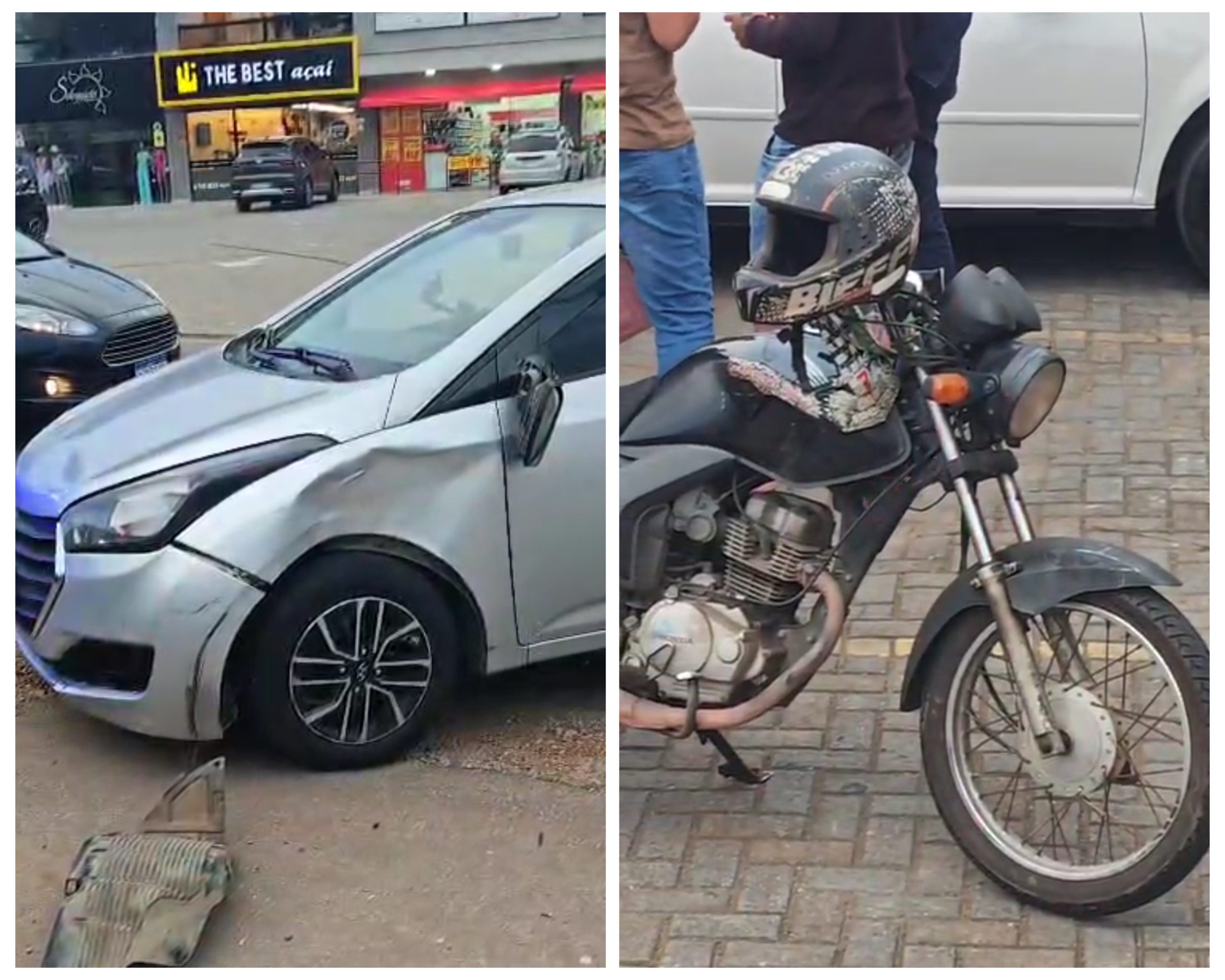 Segundo relatos, os dois seguiam no mesmo sentido, quando o carro foi fazer uma conversão para acessar o estacionamento de um comércio e foi atingido pela moto.
