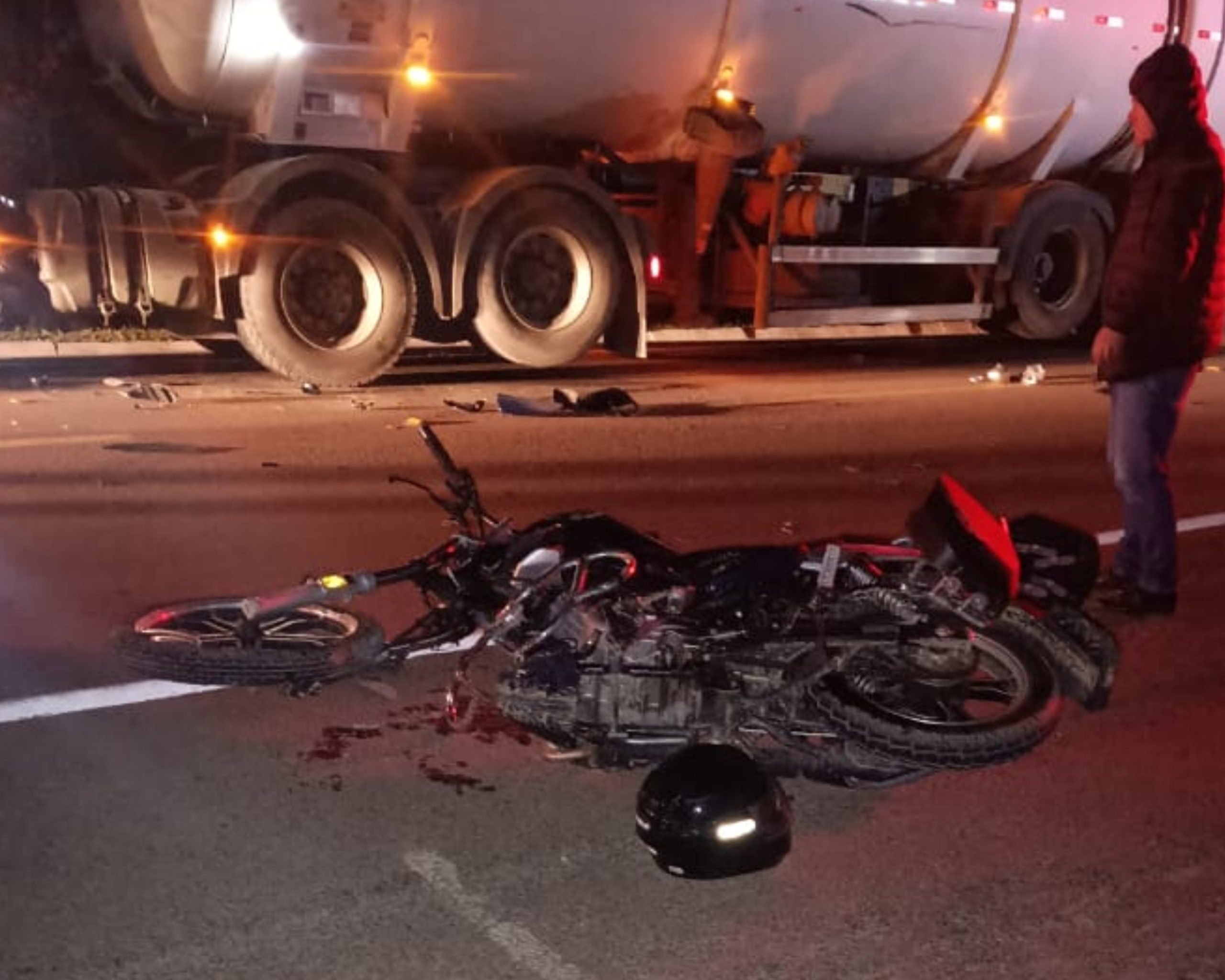 A colisão, lateral, aconteceu por volta das 19h, e envolveu um caminhão e uma motocicleta que trafegavam em sentidos opostos, segundo a Polícia Rodoviária Federal.