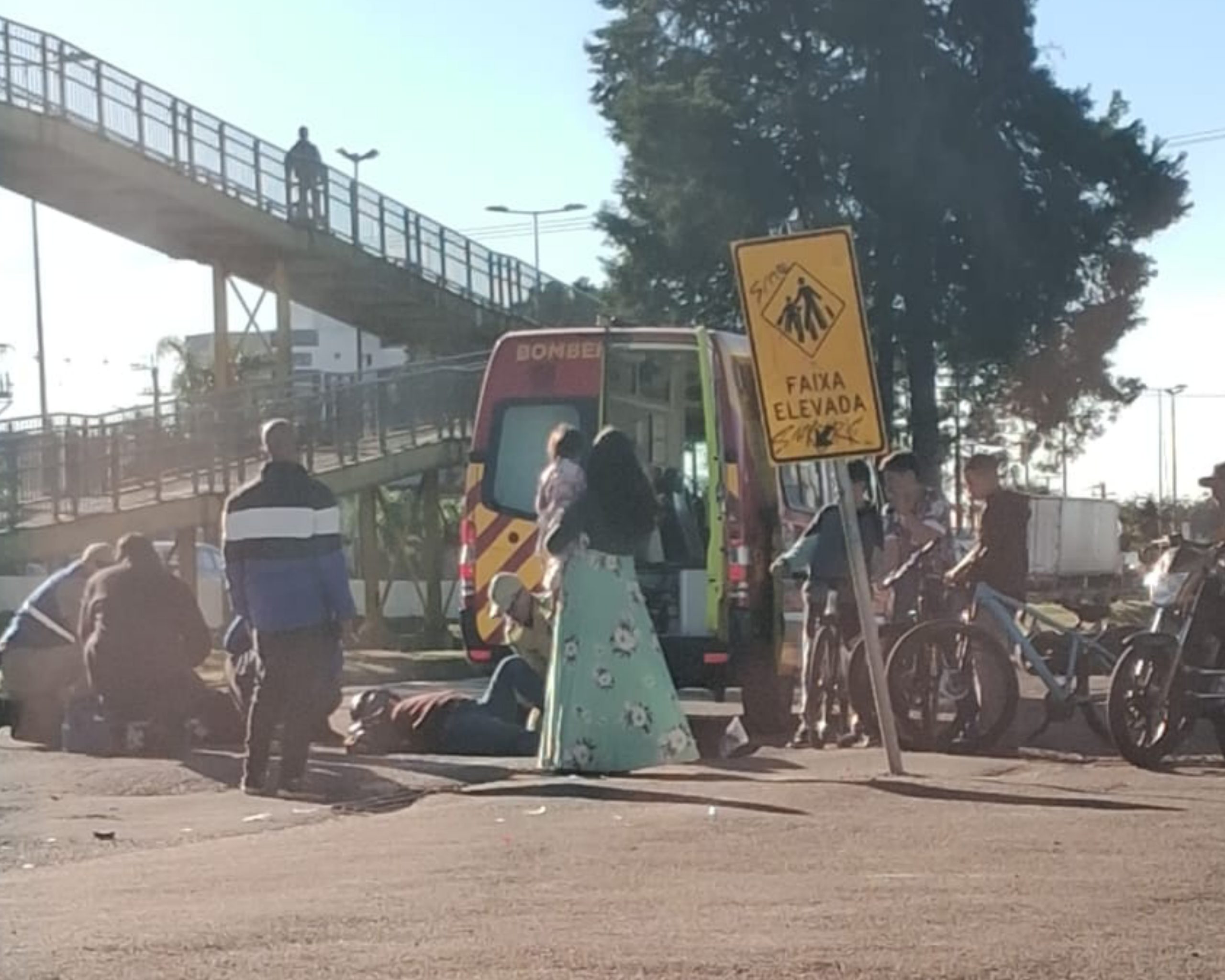 O motorista fugiu do local sem prestar socorro. O homem e a mulher, ambos com 52 anos, foram encaminhado ao Hospital do Trabalhador.