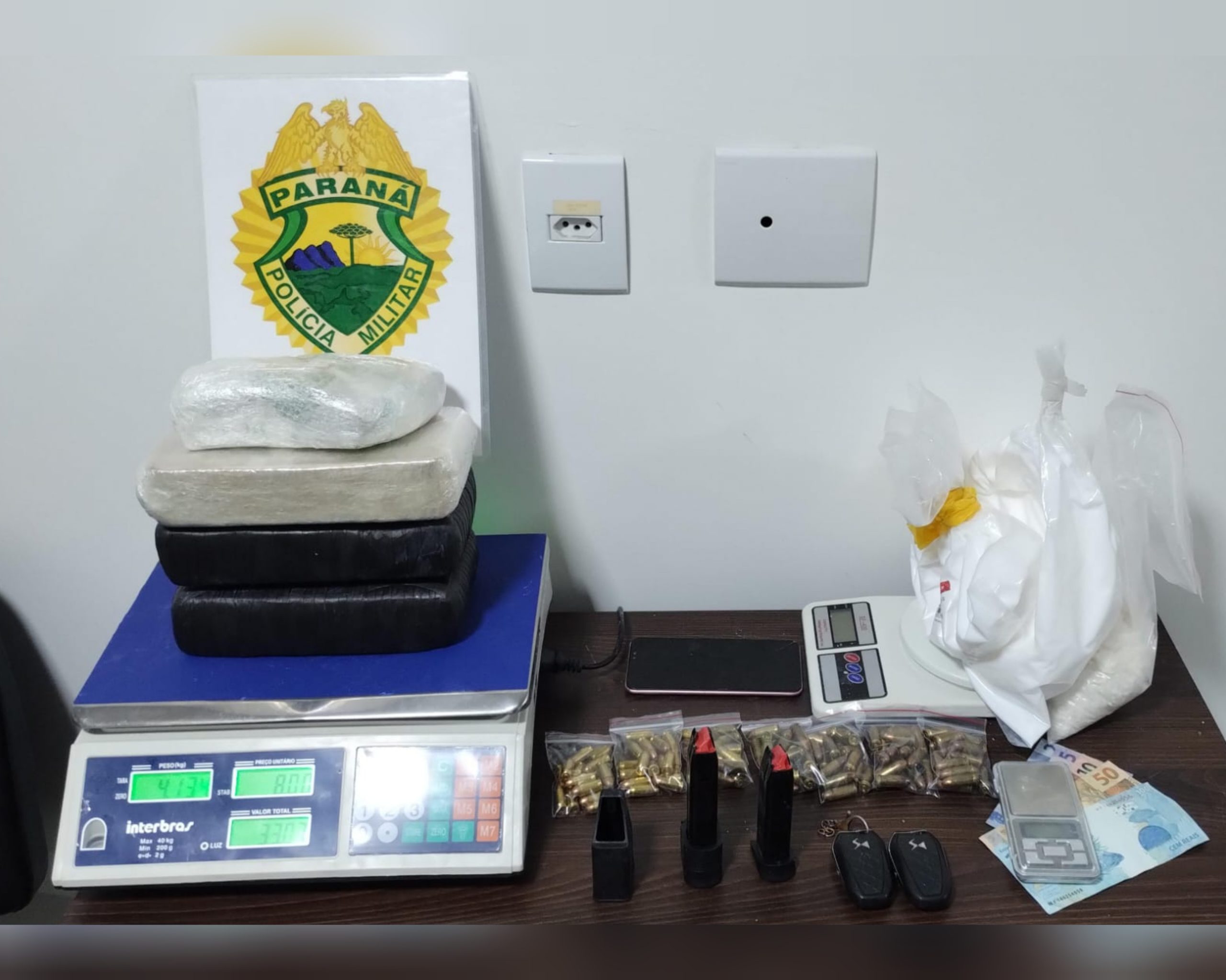 Na casa dela, os policiais encontraram mais de 70 munições de calibres 380 e 9mm, além de outra grande porção de crack, além de balança de precisão e dinheiro. Ao todo, os policiais apreenderam 4 quilos de crack na ação.