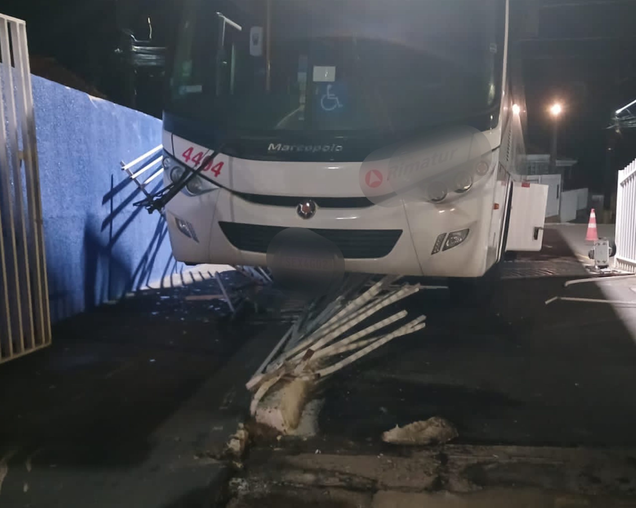 O coletivo atingiu o portão e ficou prensado contra um poste, o que evitou que invadisse o interior do condomínio e atingisse residências.