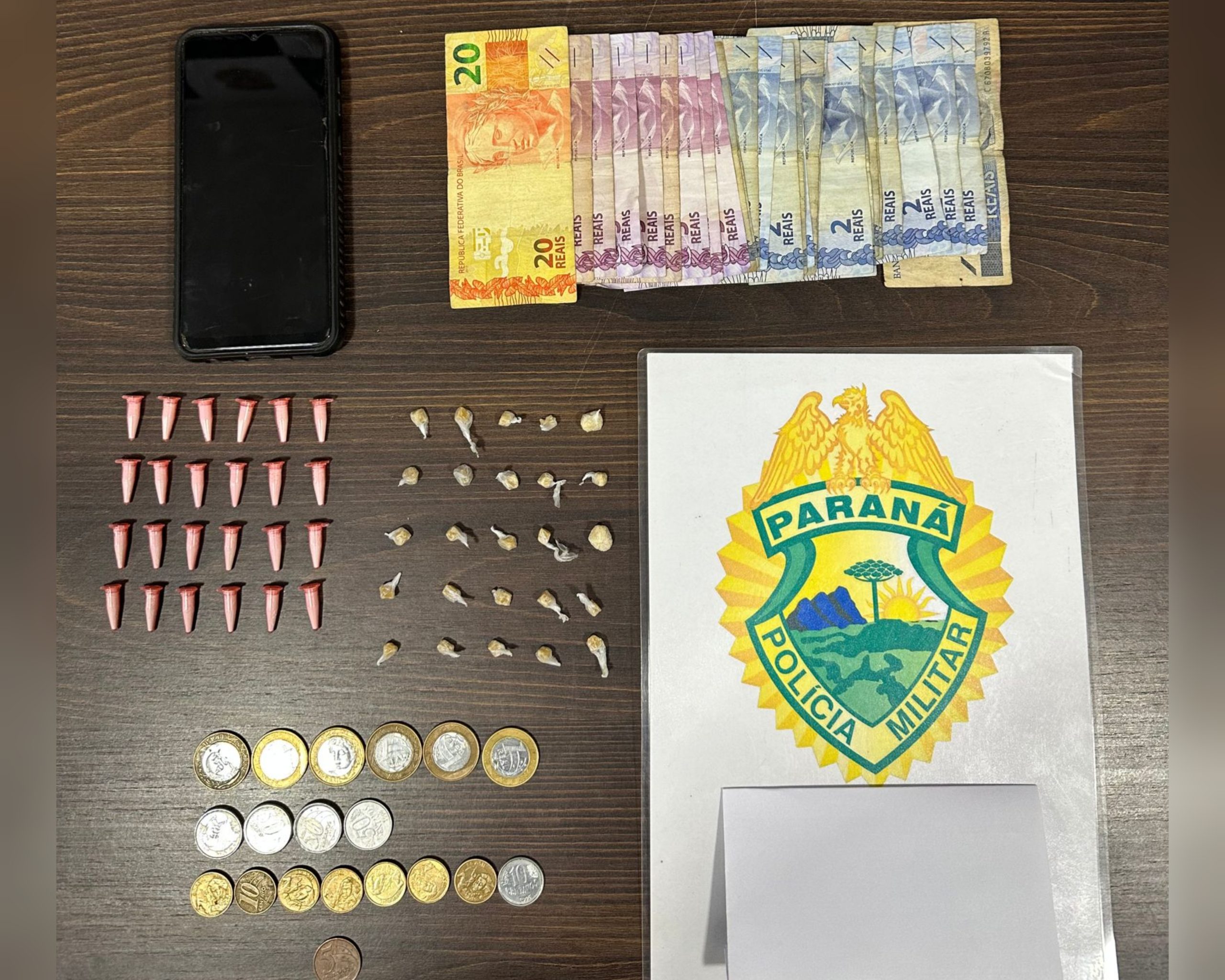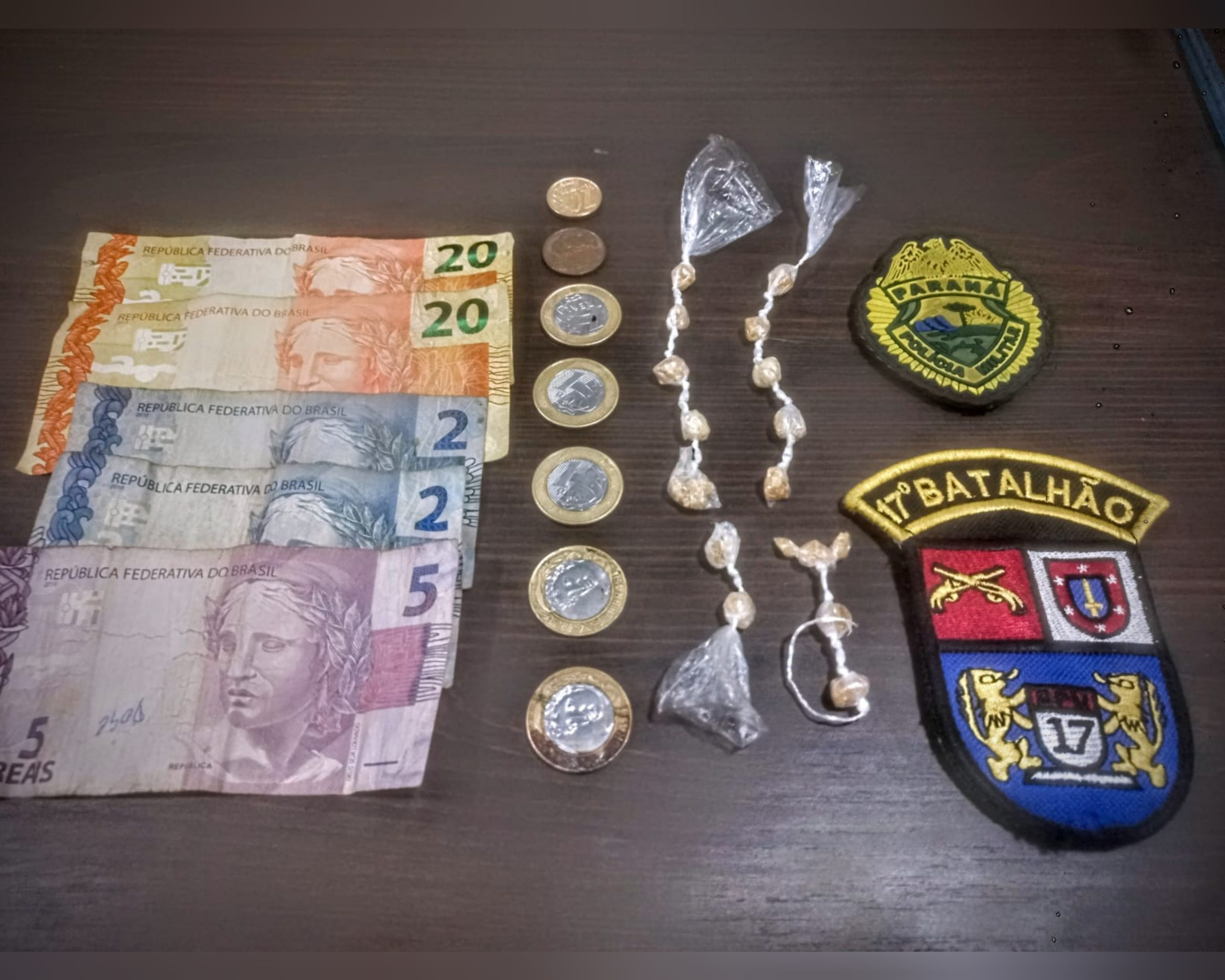 A primeira prisão aconteceu na rua Inhambu, no bairro Gralha Azul, na terça-feira. Além de porções de crack e cocaína, o homem também tinha dinheiro com origem suspeita da venda das drogas.