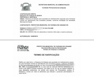A Prefeitura de Fazenda Rio Grande dispensou uma licitação extremamente suspeita para compra de medicamentos.