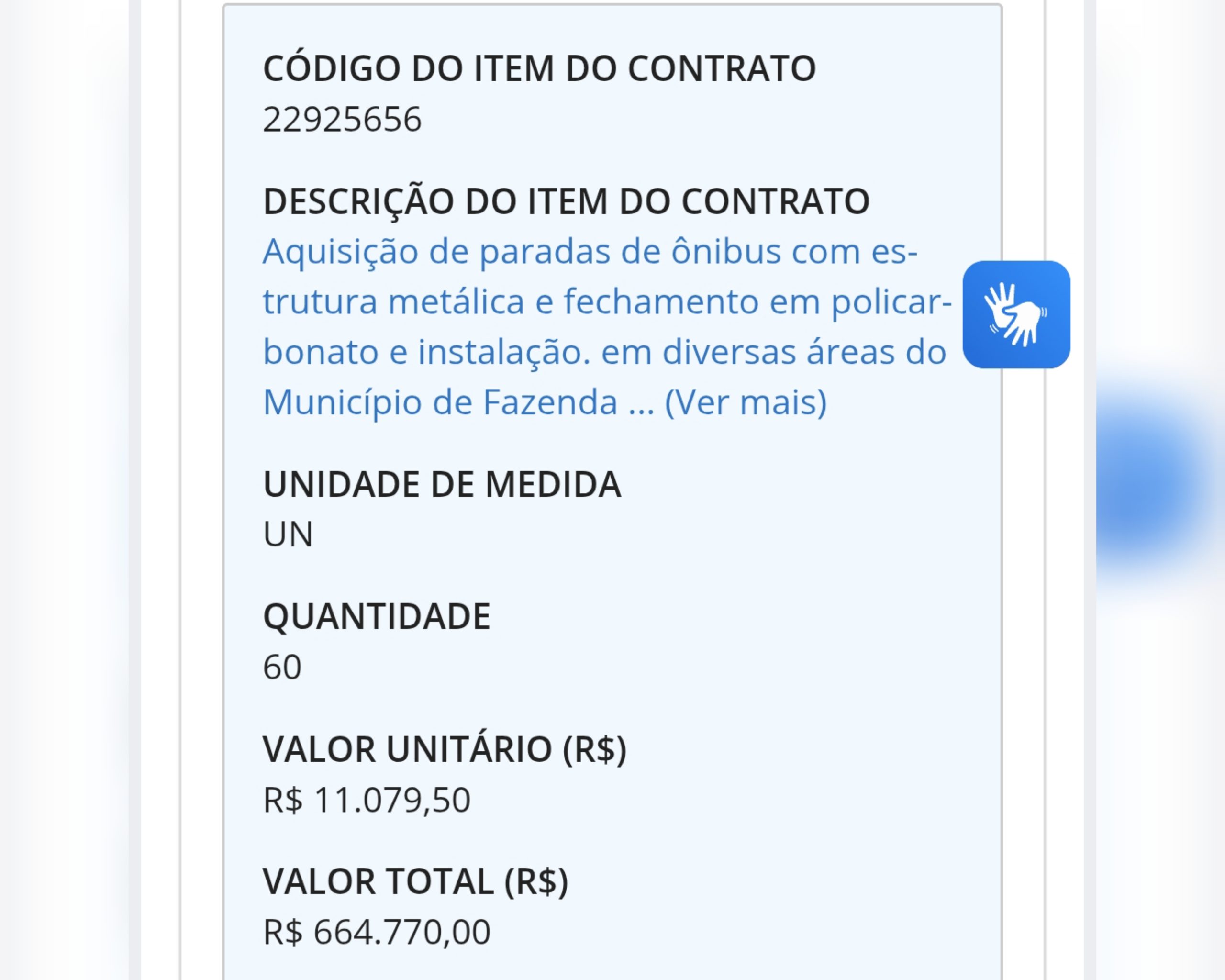 De acordo com dados do contrato 23/2025, as 60 paradas de ônibus custaram R$ 688,7 mil. Cada unidade foi paga pouco mais de R$ 11 mil.