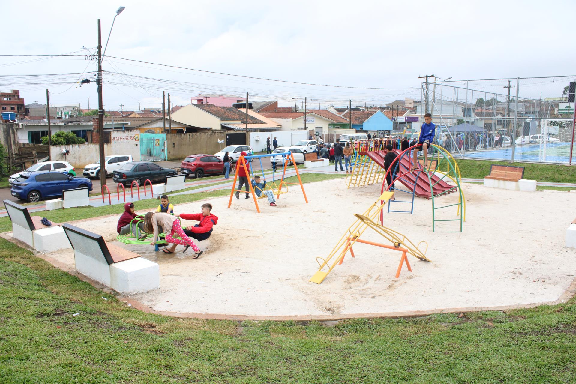 Além da praça, o bairro também está recebendo diversas obras como novas calçadas, iluminação e segurança nas escolas.