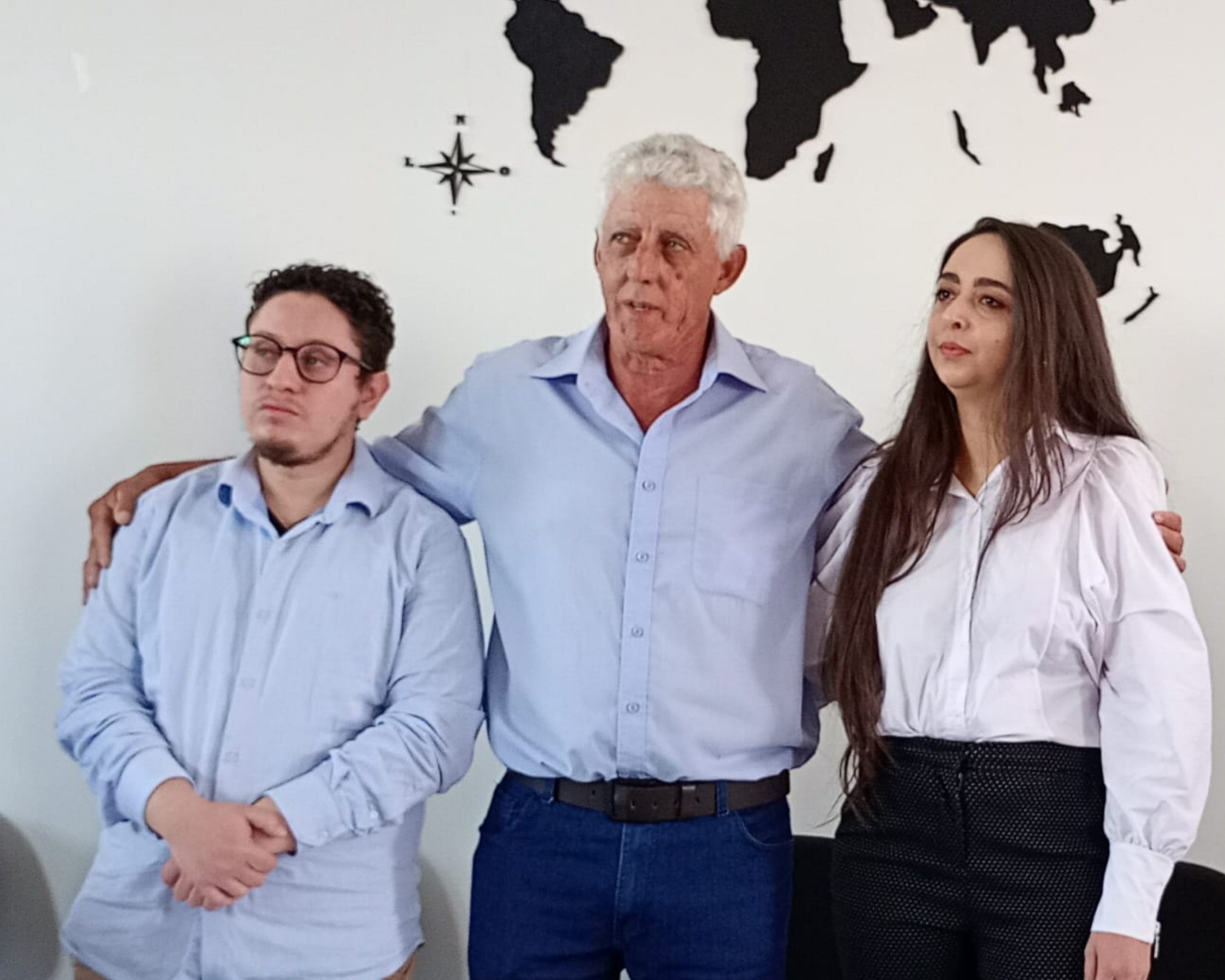 Da esquerda para a direita. Brayan Borges, Luiz, presidente municipal do partido e Débora Zanchi, candidata a prefeitura de FRG / Colaboração