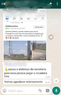 A publicação foi feita na última quinta-feira (6), e pedia a roçada do local, e a pintura de faixas. Inclusive estava pedindo a roçadeira, caso não fosse possível atender, dizendo que ela mesma faria o trabalho, porém, não foi respondida. Já em um grupo de whatsapp, o secretário, que já foi vereador no município, respondeu: “passa o endereço da secretaria para essa pessoa pegar a roçadeira. Vamos agradecer imensamente.” (sic)