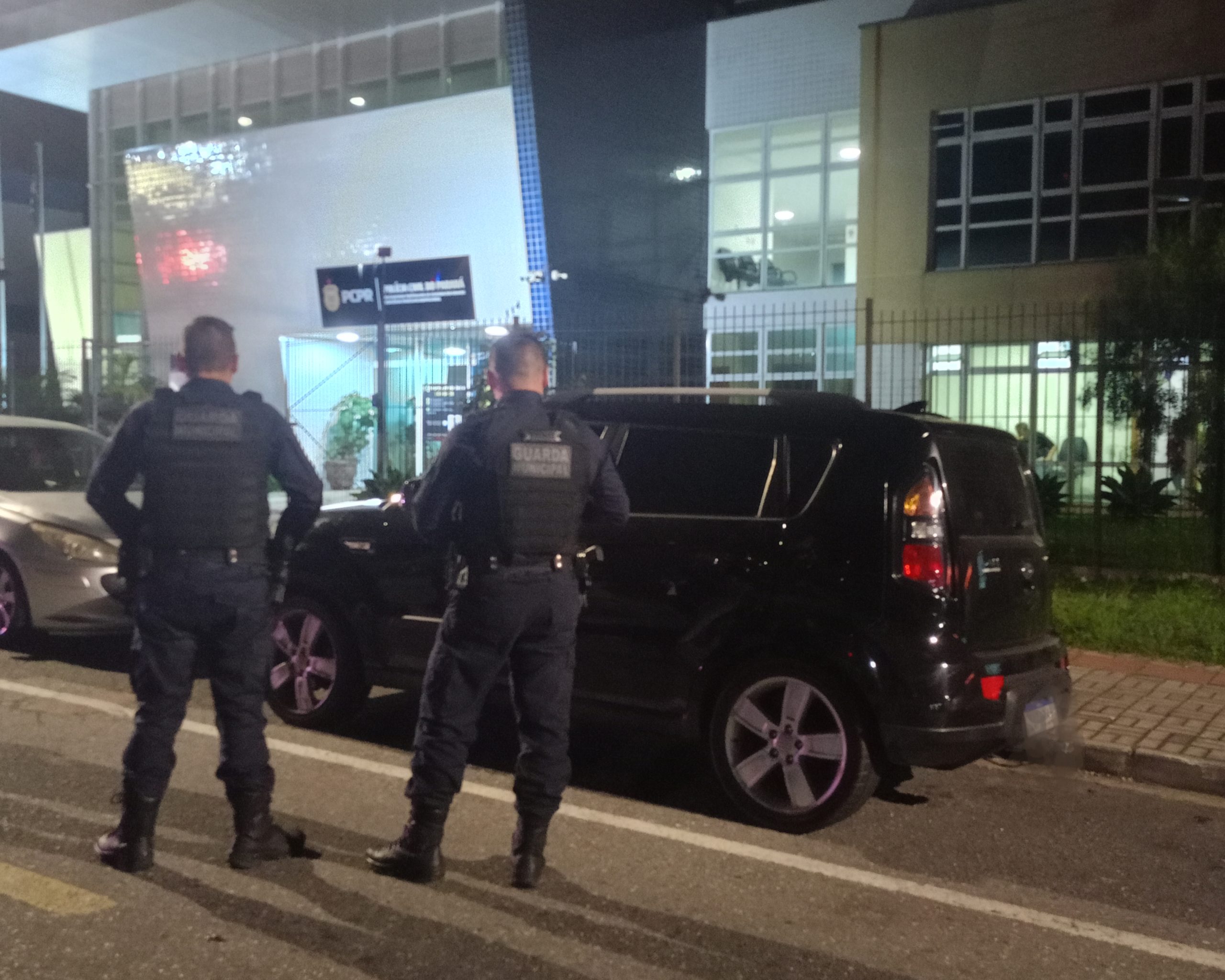Segundo a Guarda Municipal, uma equipe localizou o suspeito em um Kia Soul preto, veículo com características semelhantes ao utilizado no crime registrado em Paranaguá. Ao perceber a aproximação da viatura, ele tentou fugir e entrou em uma residência, subindo no telhado, mas acabou caindo e foi abordado.