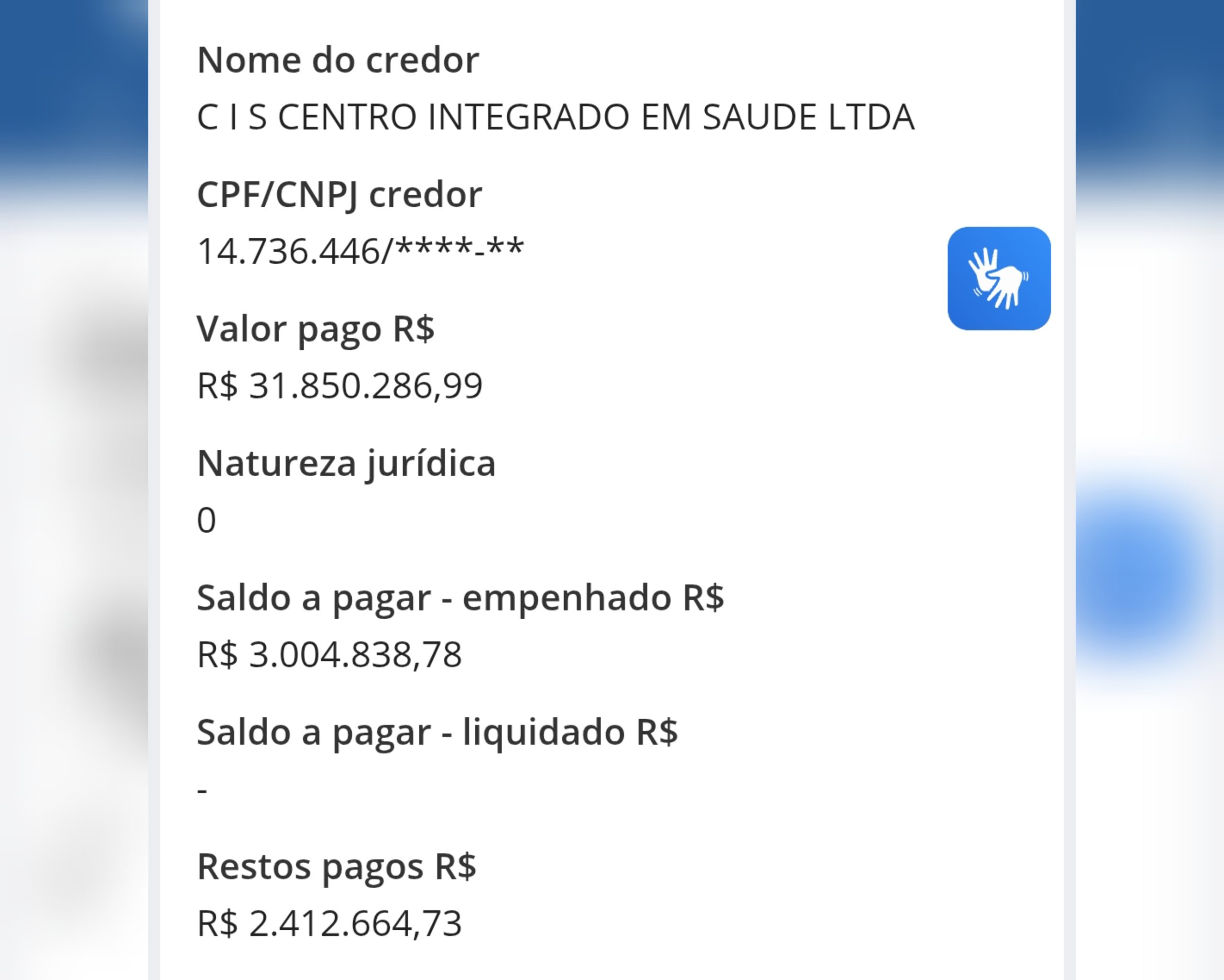 De acordo com as informações disponíveis, o valor corresponde aos repasses feitos pela administração municipal à empresa contratada para a execução dos serviços de saúde.
