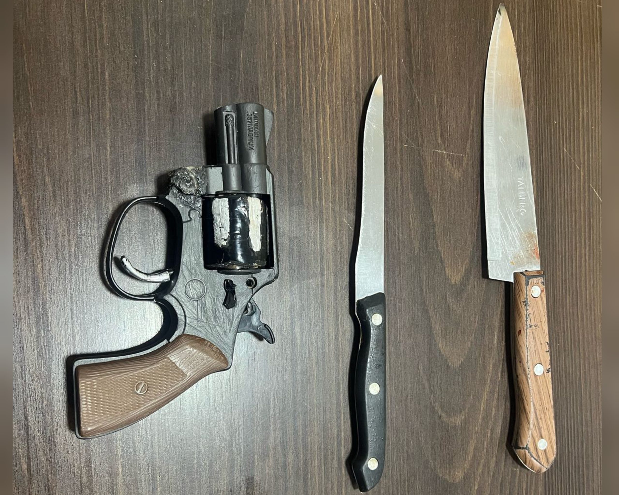 O trio foi abordado no bairro Jardim Veneza, após tentar fugir da polícia. Com eles, foram localizadas duas facas e um revólver de brinquedo.